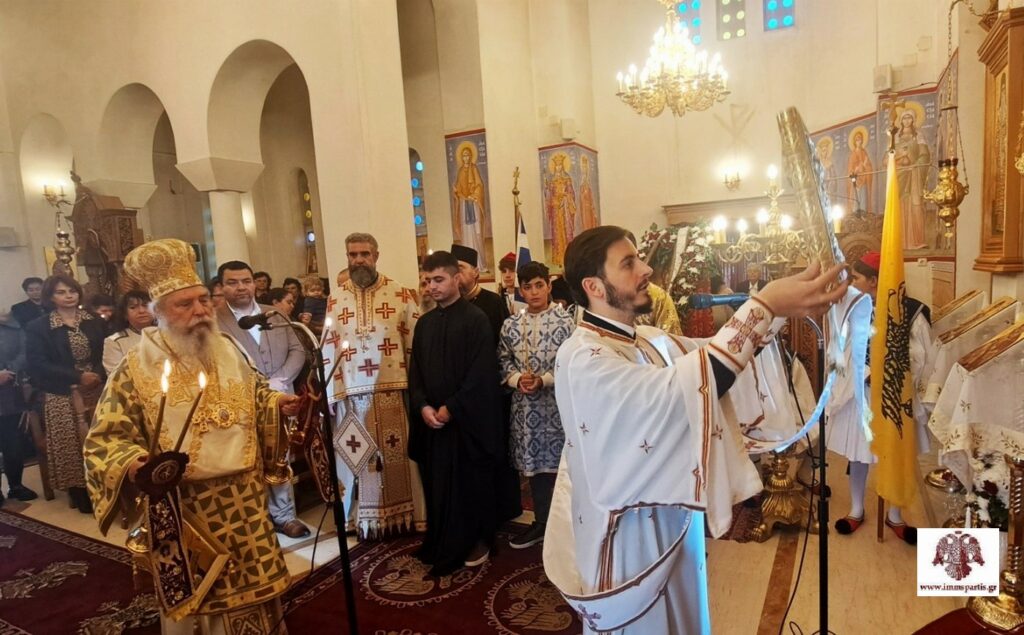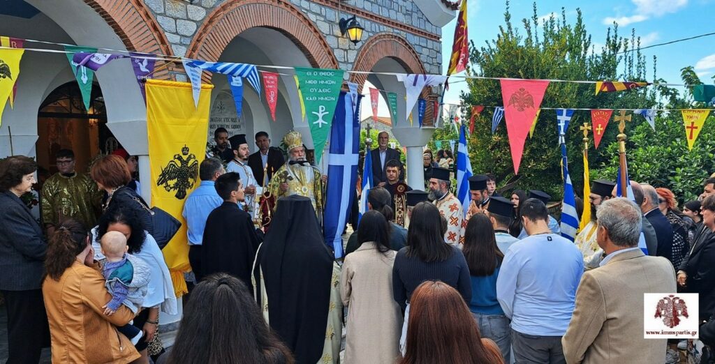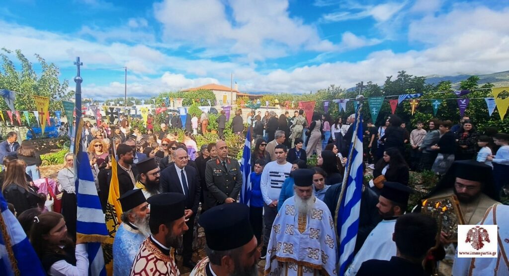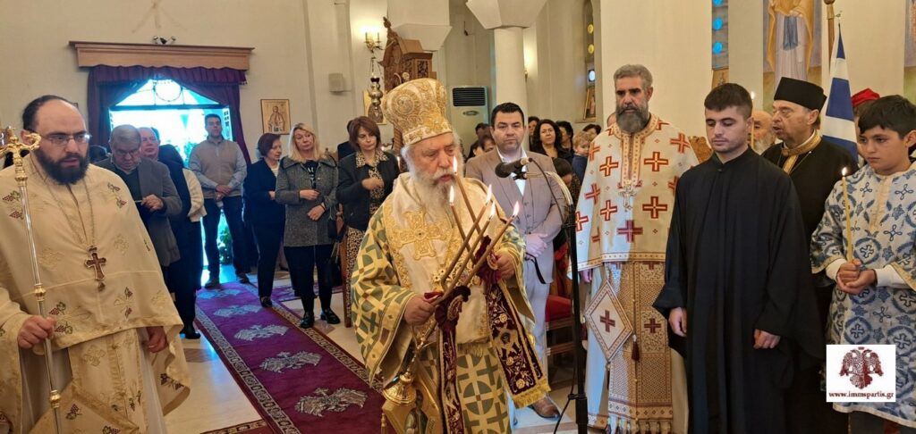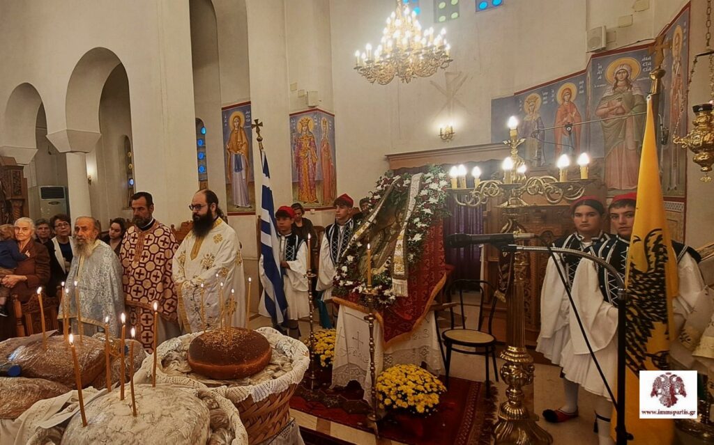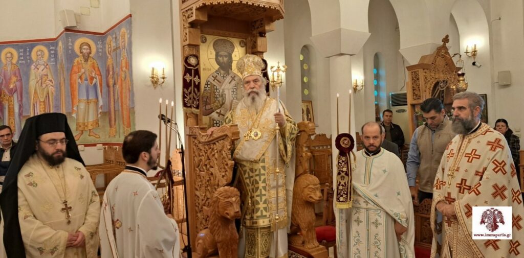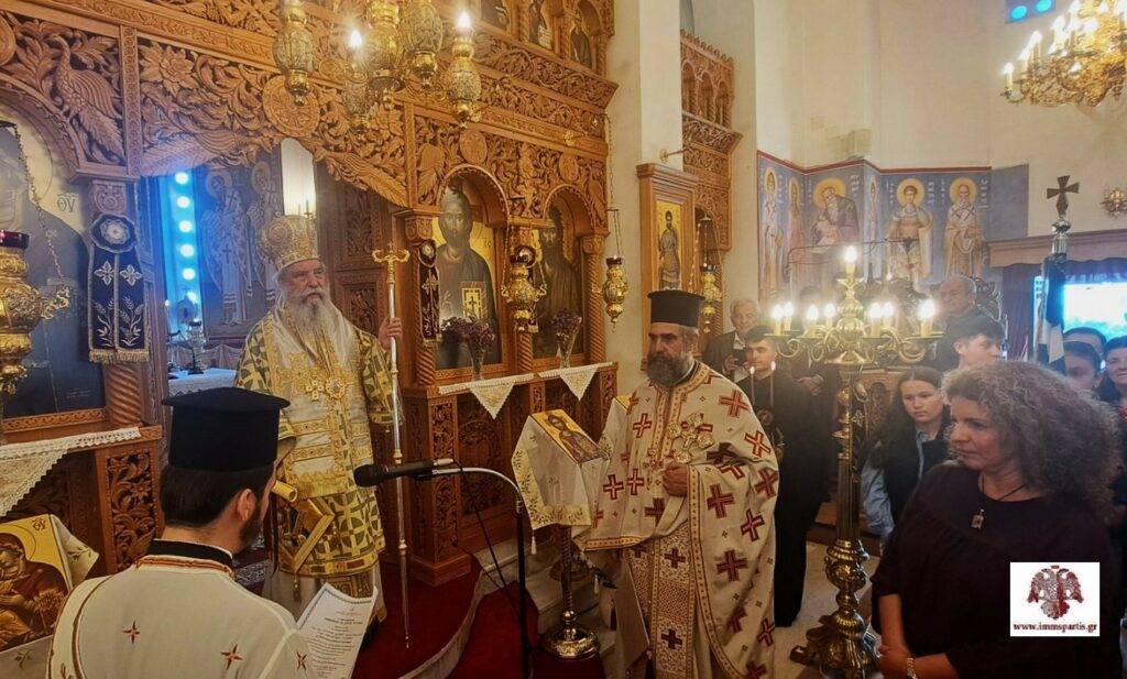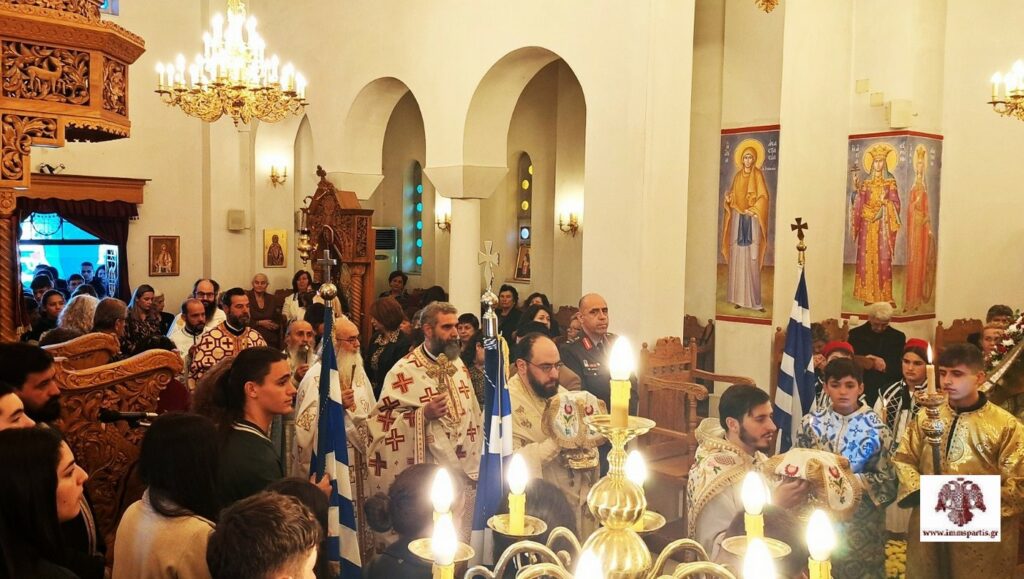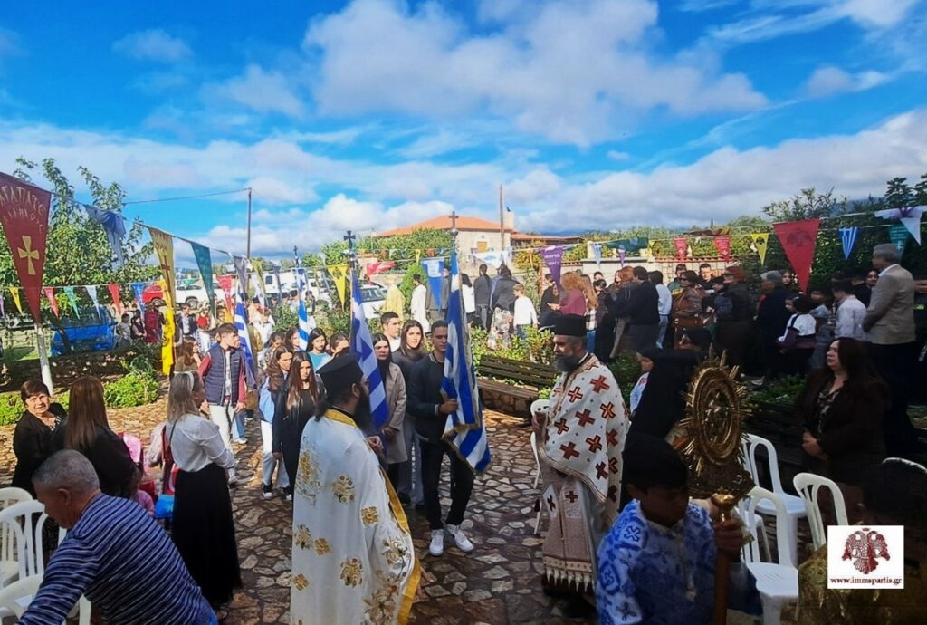 Ακολούθως, πραγματοποιήθηκε, σε κατανυκτικό κλίμα, η λιτάνευση της ιερής εικόνας του Αγίου πέριξ του Ναού. Πριν την Απόλυση, ο Σεβ. Ποιμενάρχης μας απένειμε τιμητικό έπαινο στη Δομή Διδασκαλίας της Υφαντικής Τέχνης του Πολιτιστικού Συλλόγου Γερονθρών, για τη διάσωση και μεταλαμπάδευση της παραδοσιακής αυτής χειροτεχνίας, που είναι συνδεδεμένη με την ιστορική μνήμη και την τοπική πολιτισμική ταυτότητα. Από την πλευρά τους οι εκπρόσωποι του Συλλόγου ευχαρίστησαν θερμά τον Σεβασμιώτατο για την τιμή αντιπροσφέροντας ένα συμβολικό δώρο.