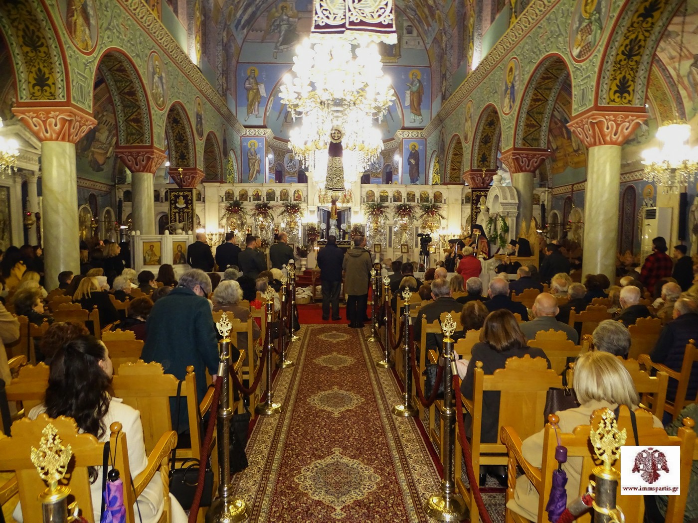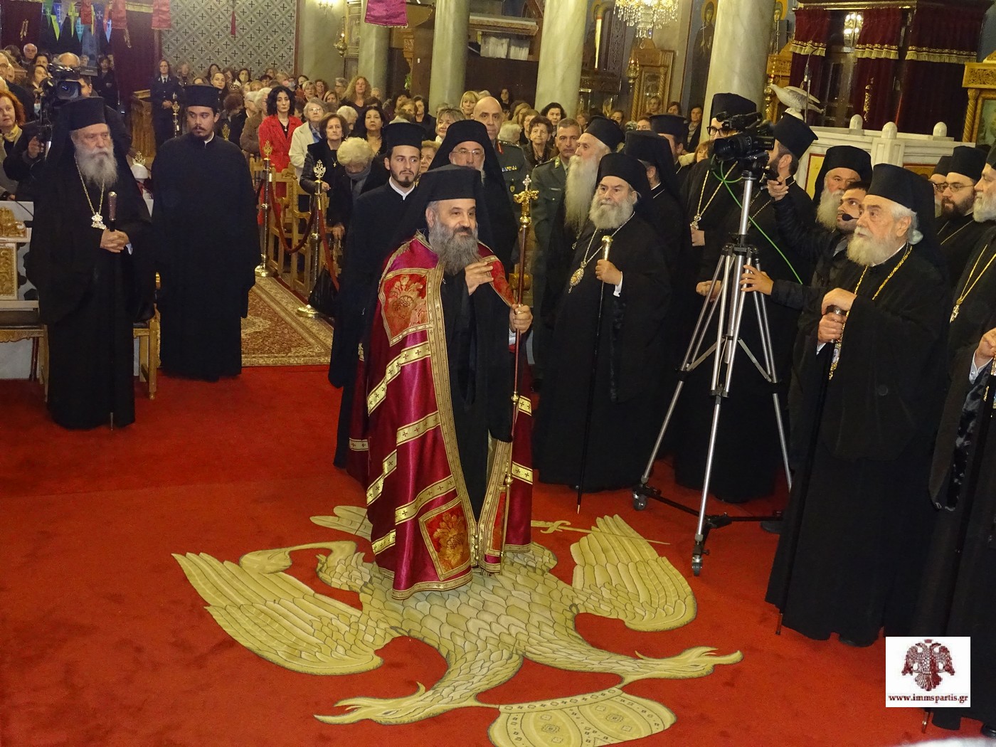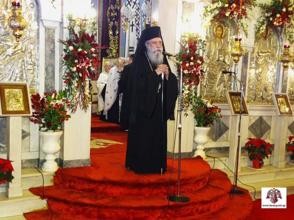 Το απόγευμα της Τρίτης 25 Νοεμβρίου, στον φερώνυμο περικαλλή Ενοριακό Ιερό Ναό της λακωνικής πρωτεύουσας, τελέσθηκε ο Μέγας πανηγυρικός Πολυαρχιερατικός Εσπερινός μετ’ αρτοκλασίας. Στην πανηγυρική εσπερινή λατρευτική σύναξη συμμετείχαν, ως προσκεκλημένοι του σεπτού Ποιμενάρχη μας κ. Ευσταθίου, ο Σεβασμιώτατος Αρχιεπίσκοπος Κρήτης κ. Ευγένιος Β΄, οι Σεβασμιώτατοι Μητροπολίτες Φωκίδος κ. Θεόκτιστος, Μάνης κ. Χρυσόστομος και Γόρτυνος και Μεγαλοπόλεως κ. Νικηφόρος και ο Αρχιγραμματέας της Ιεράς Συνόδου της Εκκλησίας της Ελλάδος Θεοφιλέστατος Επίσκοπος Σκιάθου κ. Ιωάννης, ο οποίος και χοροστάτησε. Στον Εσπερινό συμμετείχαν επίσης ο Θεοφιλέστατος Επίσκοπος Λακεδαιμονίας κ. Θεόφιλος, Βοηθός Επίσκοπος της Ιεράς Μητροπόλεώς μας, και πλειάδα κληρικών απ’ όλη την Μητροπολιτική μας περιφέρεια.