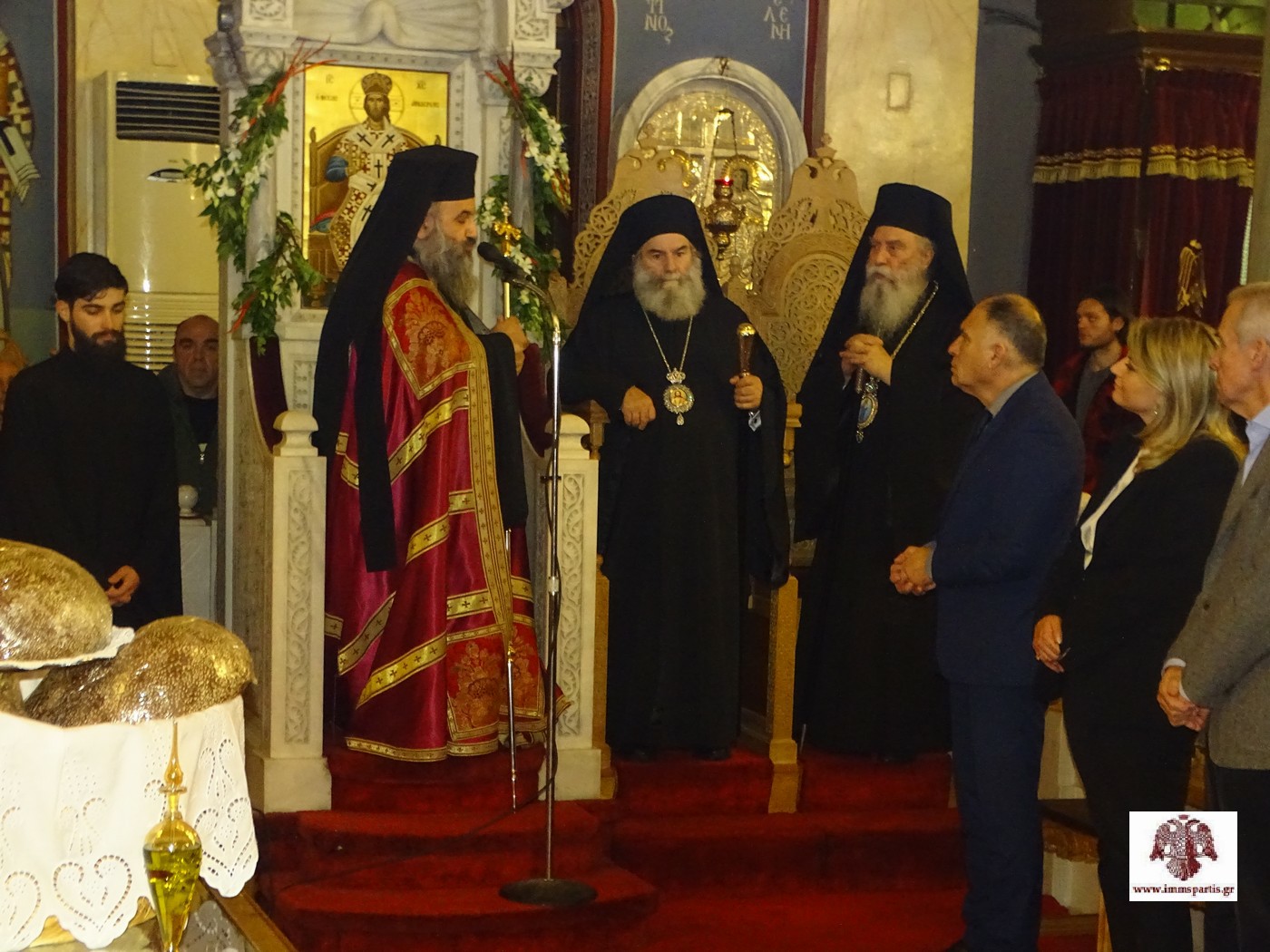 Ο Σεβασμιώτατος Μητροπολίτης μας κ. Ευστάθιος, αμέσως μετά την ευλόγηση των άρτων, παρουσίασε στο εκκλησίασμα με επαινετικά λόγια τους προσκεκλημένους Αρχιερείς και παράλληλα τους ευχαρίστησε για την ευγενική αποδοχή της πρόσκλησής του. Ολοκληρώνοντας, ο σεπτός Ποιμενάρχης μας τόνισε ότι κάθε τόπο τον κοσμούν και τον ενισχύουν οι Άγιοί του. Η ιστορική Λακεδαίμονα, συνέχισε ο Σεβασμιώτατος, έχει την ευλογία να την προστατεύει ο Όσιος Νίκων, ο οποίος και στην αποκαλυπτική εποχή μας συνεχίζει να αποτελεί λαμπρό οδοδείκτη για κάθε χριστιανό με το πολυδύναμο κήρυγμά του.
