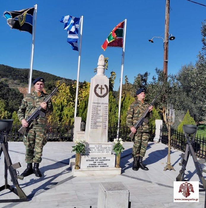 Μετά την επιμνημόσυνη δέηση, ακολούθησε ομιλία από αξιωματικό του Κ.Ε.Ε.Μ., στην οποία αναφέρθηκε στο τραγικό δυστύχημα, ενώ ανάγνωσε και τα ονόματα των αειμνήστων στρατιωτών. Στη συνέχεια, πραγματοποιήθηκε κατάθεση στεφάνου από τον Στρατιωτικό Διοικητή Λακωνίας, Ταξίαρχο κ. Γεώργιο Ζορμπά, τηρήθηκε ενός λεπτού σιγής και έγινε ανάκρουση του Εθνικού μας Ύμνου.
