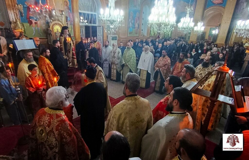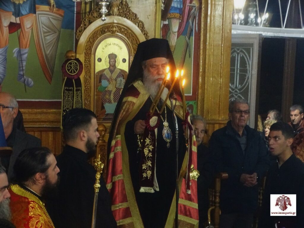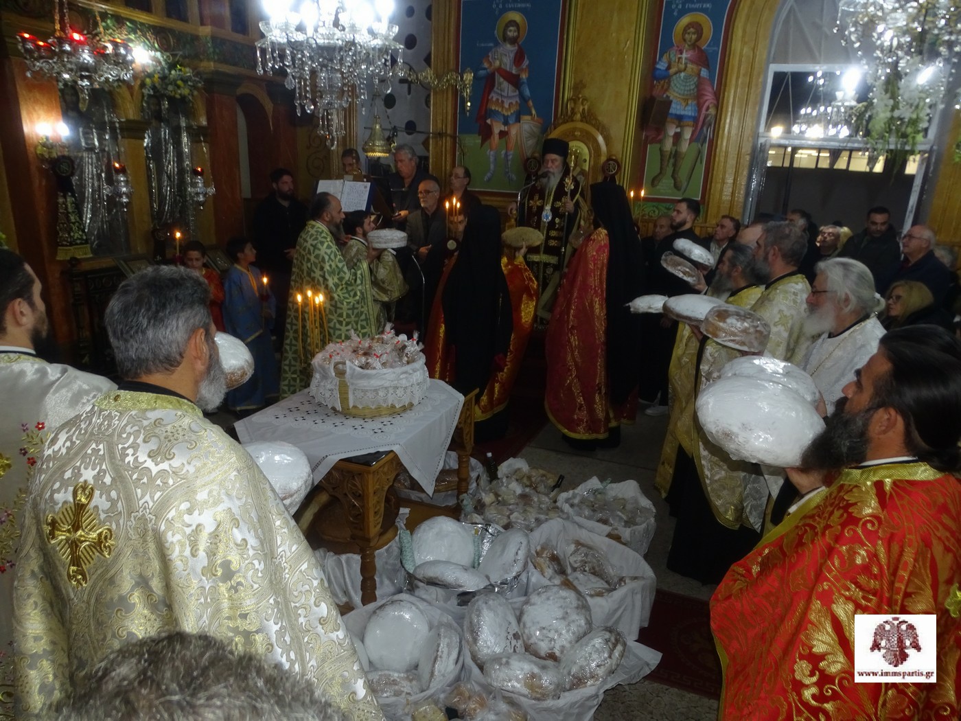 Το απόγευμα της παραμονής της εορτής τελέσθηκε ο Μέγας πανηγυρικός Αρχιερατικός Εσπερινός μετ’ αρτοκλασίας χοροστατούντος του Σεβασμιωτάτου Μητροπολίτη μας κ. Ευσταθίου και με τη συμμετοχή αρκετών κληρικών από την ευρύτερη περιοχή.