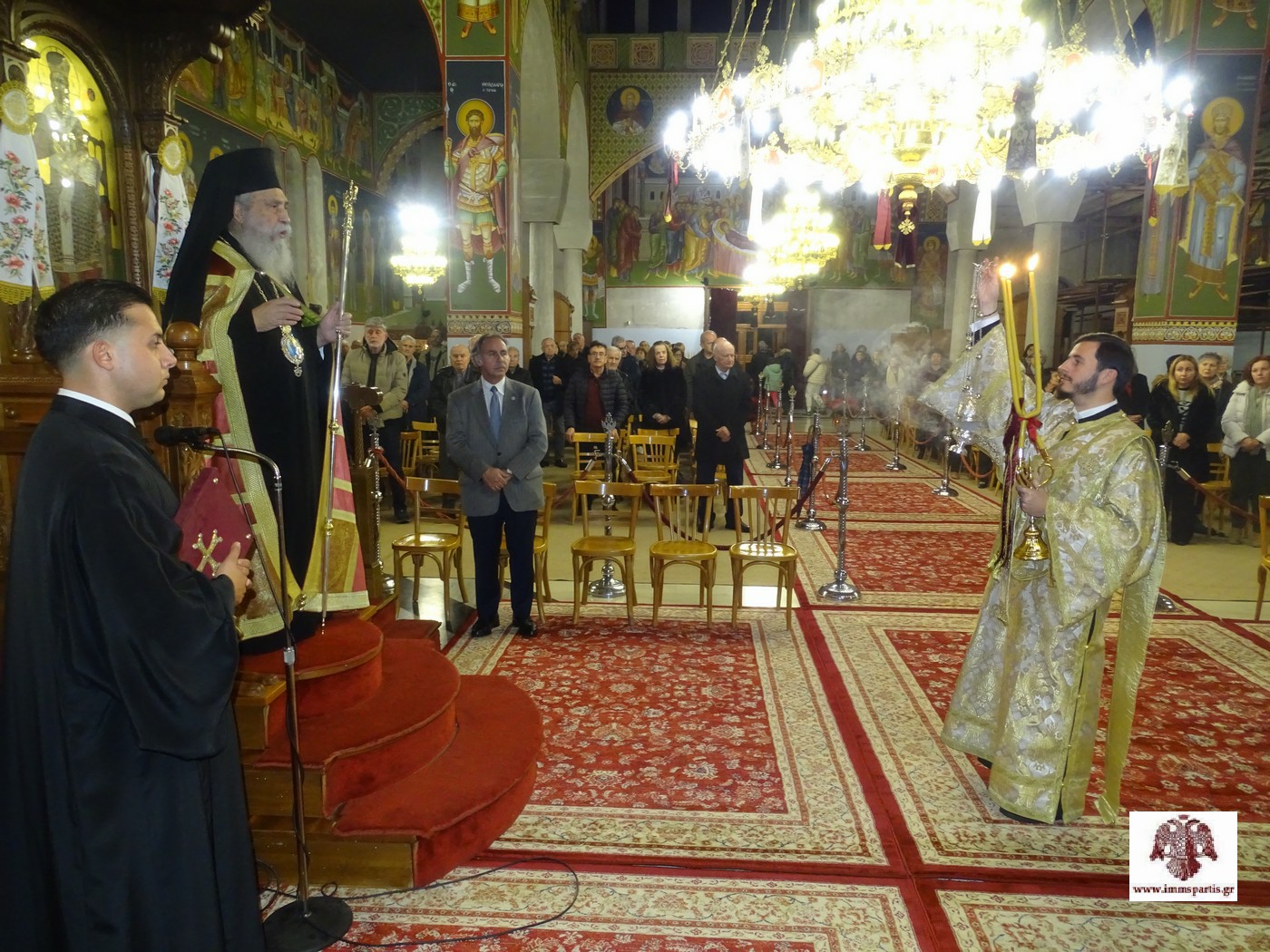 Ειδικότερα, το απόγευμα της Παρασκευής 5 Δεκεμβρίου τελέσθηκε ο πανηγυρικός Αρχιερατικός Εσπερινός χοροστατούντος του Σεβασμιωτάτου Μητροπολίτη μας κ. Ευσταθίου.