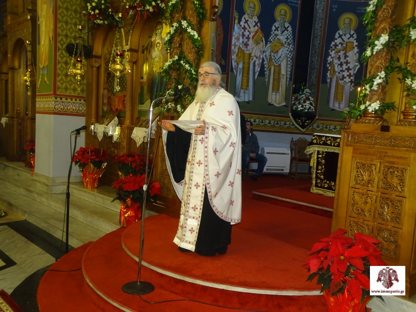 Κατακλείοντας την εσπερινή πανηγυρική λατρευτική σύναξη, ο σεπτός Ποιμενάρχης μας ευχαρίστησε τον π Γεώργιο, για την μεστή νοημάτων ομιλία του, ενώ ευχήθηκε ο Άγιος Νικόλαος να αποτελεί για κάθε χριστιανό φωτεινό οδοδείκτη πίστεως, πραότητας και ταπεινότητας.
