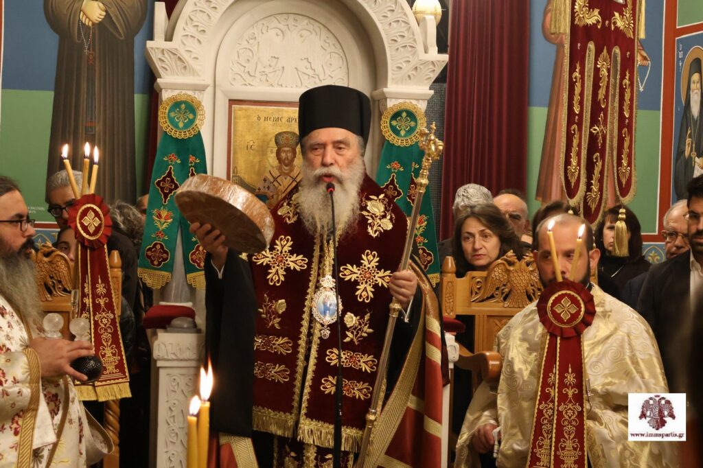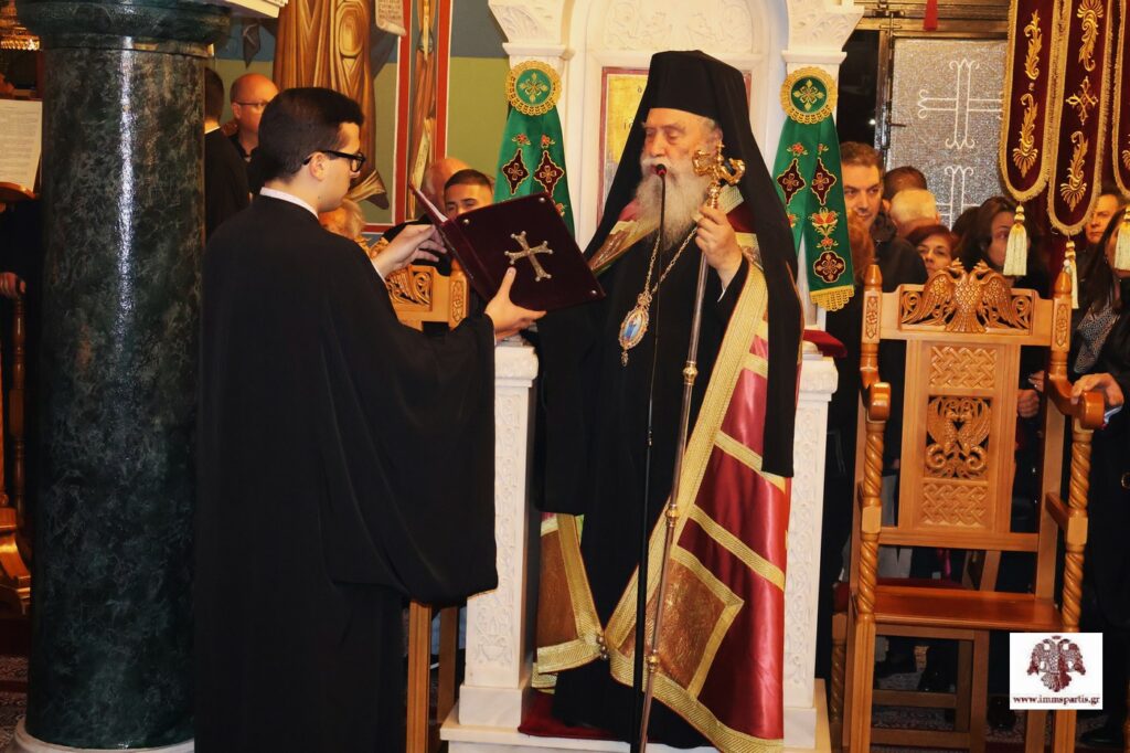 Αφού εψάλλησαν τα εγκώμια του Αγίου και ευλογήθηκαν οι άρτοι, ο σεπτός Ποιμενάρχης μας χειροθέτησε Αναγνώστη έναν ευσεβή νέο της Ενορίας, τον Κώστα Τσιριγώτη, μαθητή Λυκείου. Ο Σεβασμιώτατος στη σύντομη προσλαλιά του, μίλησε με επαινετικά λόγια για το ήθος και τις ψαλτικές δυνατότητες του νέου Αναγνώστη, ενώ τον συμβούλευσε όταν ψέλνει να έχει στο νου και την καρδιά του μόνο τον Τριαδικό Θεό, την Παναγία και τους Αγίους που εξυμνεί, χωρίς ίχνος έπαρσης. Παράλληλα, συνεχάρη τους γονείς του, τον πνευματικό του πατέρα και εφημέριο της Ενορίας, Πανοσιολογιώτατο Αρχιμανδρίτη π. Σεραφείμ Κοσμά, ο οποίος έχει καταφέρει να έχει κοντά του τους νέους και τις νέες της περιοχής, καθώς και τους δασκάλους του στην ψαλτική. Ολοκληρώνοντας, ευχήθηκε στον χειροθετηθέντα να έχει τη χάρη του Πανάγαθου Θεού και να συνεχίσει με τον ίδιο ζήλο να πορεύεται στον δρόμο της αρετής και της μάθησης.