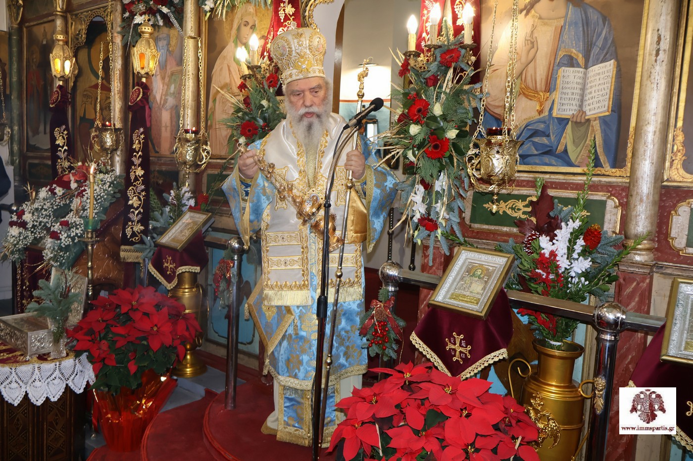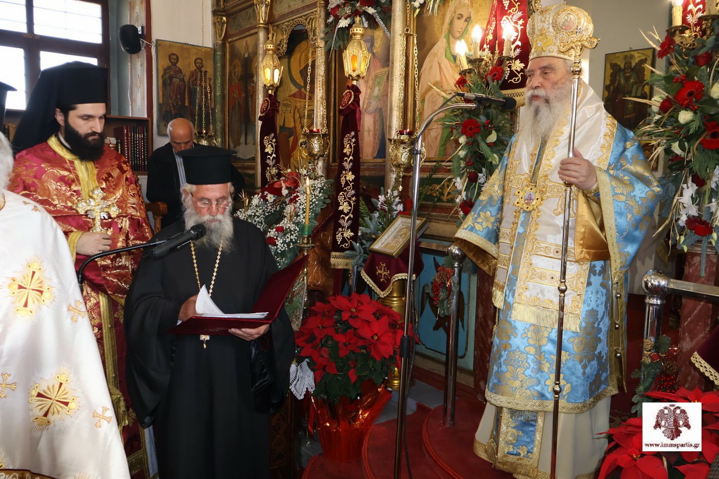 Από την πλευρά του, ο Σεβασμιώτατος Μητροπολίτης μας επαίνεσε τον π. Λάζαρο και τον κ. Δαβάκη για τις πρωτοβουλίες που ανέλαβαν, καθώς και όλους όσοι βοήθησαν με οποιονδήποτε τρόπο στην αποκατάσταση του Ναού. Μάλιστα, τόνισε ότι τέτοιες δυσκολίες τις επιτρέπει πολλές φορές ο Θεός για να ενεργοποιηθούν αδρανείς δυνάμεις και να για να ενωθεί μία κοινωνία κάτω από ένα κοινό σκοπό. Ιδιαίτερες ευχαριστίες εξέφρασε ο σεπτός Ποιμενάρχης μας προς τον κ. Αθανάσιο Μαρτίνο, που αποτελεί πολύτιμο στήριγμα, με το πολυποίκιλο φιλανθρωπικό έργο του, για το Οικουμενικό Πατριαρχείο, για άλλα Πατριαρχεία, την Εκκλησία της Ελλάδος, το Άγιο Όρος και άλλους φορείς και τον οποίο η τοπική μας Εκκλησία θα τιμήσει καταλλήλως όταν ολοκληρωθεί το μεγάλο έργο που έχει αναλάβει με αποκλειστική χορηγία του, αυτό της ανακαίνισης εσωτερικά και εξωτερικά του Μητροπολιτικού Ναού Ευαγγελιστρίας και της ανακαίνισης της Στέγης Νεότητας της Μητροπόλεώς μας.