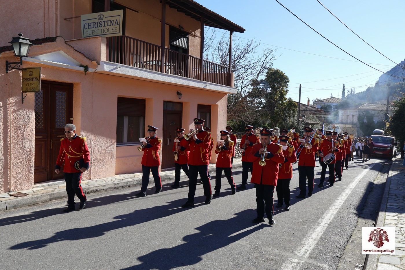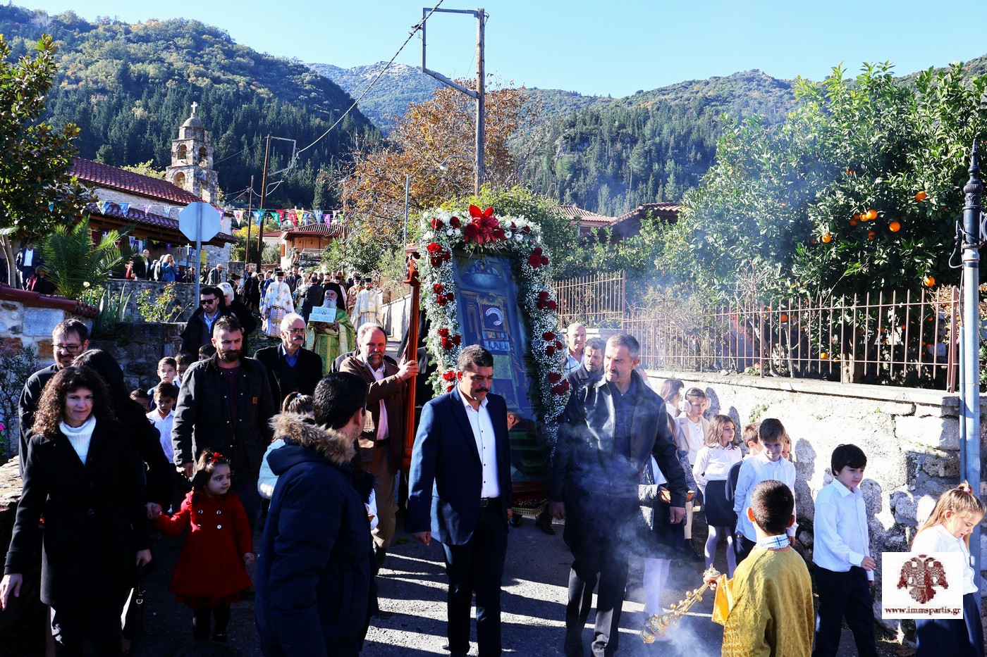Ακολούθησε, σε κατανυκτικό κλίμα, η καθιερωμένη από το 1921 λιτάνευση της Ιερής Εικόνας του Αγίου Σπυρίδωνος στους κεντρικούς δρόμους του Μυστρά, υπό τους παιανισμούς της Φιλαρμονικής του Δ. Σπάρτης, της οποίας ο Άγιος Σπυρίδωνας είναι και προστάτης.