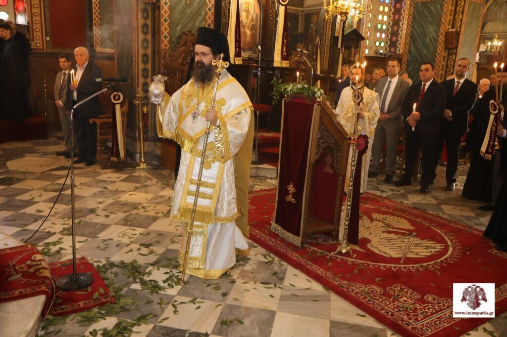 Αρχικά σήμαναν οι καμπάνες των Ιερών Ναών της πόλης παρατεταμένα. Ακολούθως, στο Επισκοπείο, έλαβε χώρα η αμφιοφορία του Σεβασμιωτάτου Μητροπολίτη μας κ. Ευσταθίου, σύμφωνα με το Βυζαντινό τυπικό, παρουσία του Θεοφιλεστάτου Επισκόπου Λακεδαιμονίας κ. Θεοφίλου, πλειάδας κληρικών της τοπικής μας Εκκλησίας, τοπικών αρχόντων και εκπροσώπων των Σωμάτων Ασφαλείας. Στη συνέχεια, σχηματίσθηκε λιτανευτική πομπή, η οποία κατέληξε στον Μητροπολιτικό Ναό Ευαγγελιστρίας, όπου τελέσθηκε ο Εσπερινός της Αγάπης.