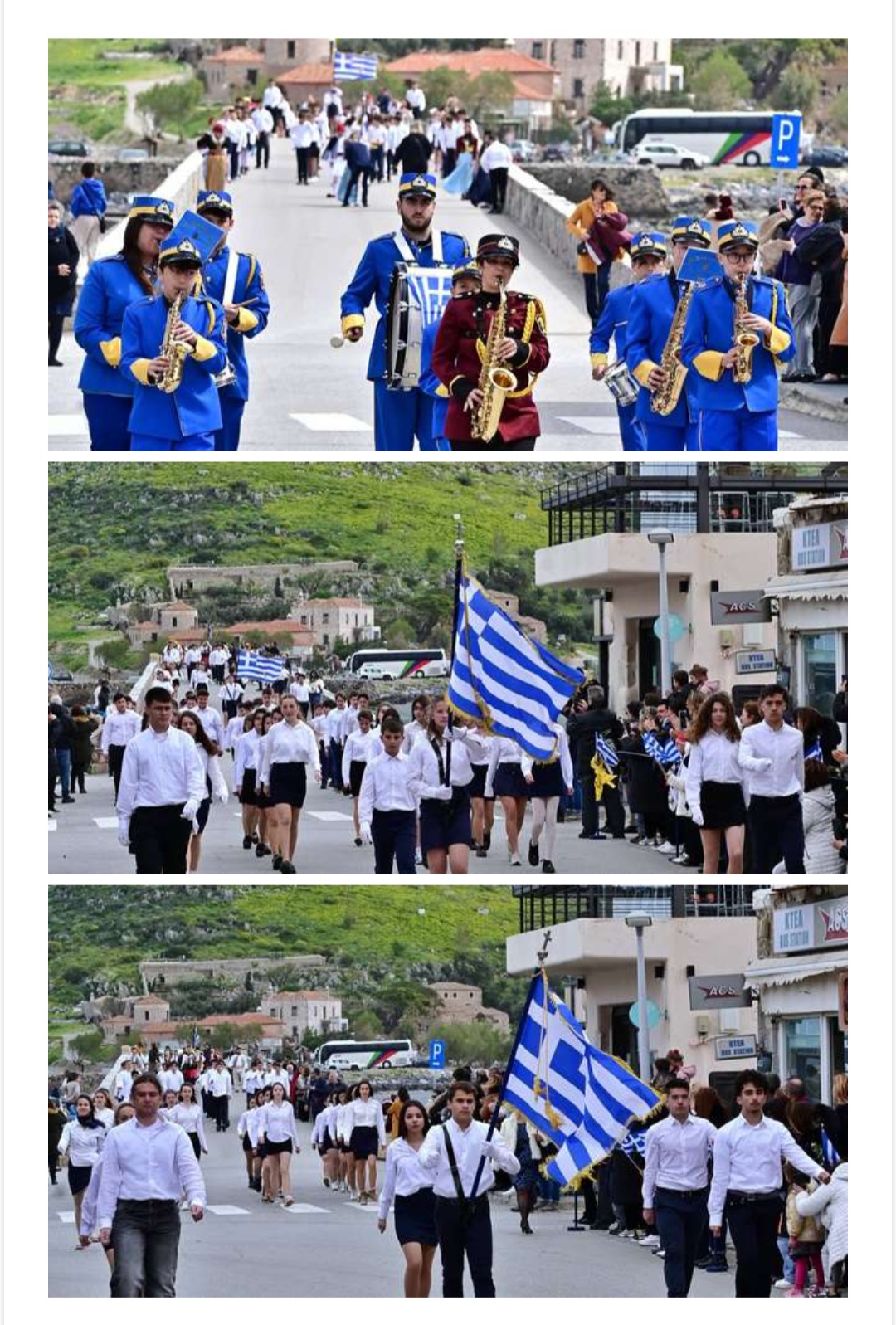 Με κάθε λαμπρότητα και με τη συμμετοχή πλήθος κόσμου, η ιστορική πόλη της Μονεμβασίας εόρτασε και φέτος την εθνική επέτειος της 25ης Μαρτίου 1821.