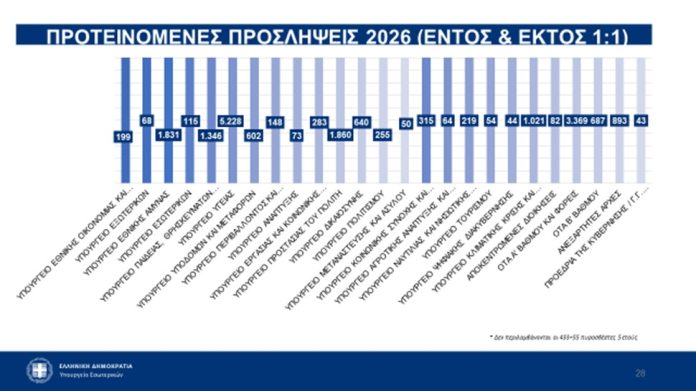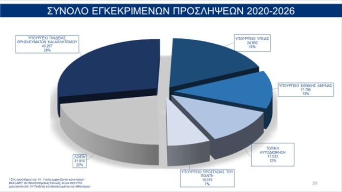 Ειδικότερα, για το 2026 εγκρίθηκαν συνολικά 19.489 προσλήψεις τακτικού προσωπικού και προσωπικού με έμμισθη εντολή.