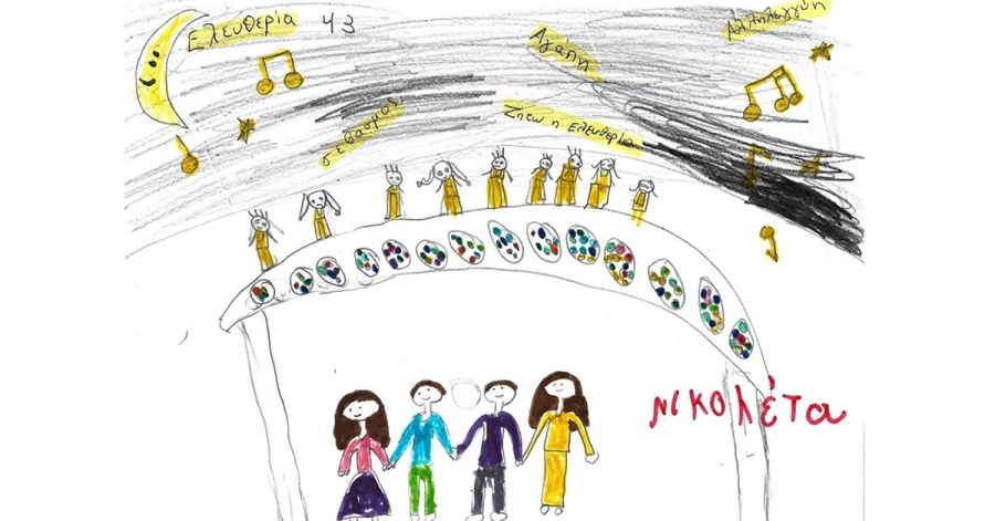 Το αποτέλεσμα όλης αυτής της βιωματικής διαδικασίας ήταν μια συλλογή από αυθεντικά παιδικά έργα ζωγραφικής , που φέρουν τη σοβαρότητα και την αθωότητα με την οποία τα παιδιά προσεγγίζουν τις μεγάλες έννοιες, όπως κάνουν πάντα, με αλήθεια.