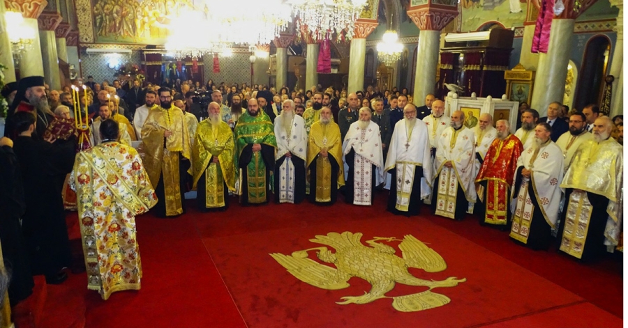 Το απόγευμα της Τρίτης 25 Νοεμβρίου, στον φερώνυμο περικαλλή Ενοριακό Ιερό Ναό της λακωνικής πρωτεύουσας, τελέσθηκε ο Μέγας πανηγυρικός Πολυαρχιερατικός Εσπερινός μετ’ αρτοκλασίας. Στην πανηγυρική εσπερινή λατρευτική σύναξη συμμετείχαν, ως προσκεκλημένοι του σεπτού Ποιμενάρχη μας κ. Ευσταθίου, ο Σεβασμιώτατος Αρχιεπίσκοπος Κρήτης κ. Ευγένιος Β΄, οι Σεβασμιώτατοι Μητροπολίτες Φωκίδος κ. Θεόκτιστος, Μάνης κ. Χρυσόστομος και Γόρτυνος και Μεγαλοπόλεως κ. Νικηφόρος και ο Αρχιγραμματέας της Ιεράς Συνόδου της Εκκλησίας της Ελλάδος Θεοφιλέστατος Επίσκοπος Σκιάθου κ. Ιωάννης, ο οποίος και χοροστάτησε. Στον Εσπερινό συμμετείχαν επίσης ο Θεοφιλέστατος Επίσκοπος Λακεδαιμονίας κ. Θεόφιλος, Βοηθός Επίσκοπος της Ιεράς Μητροπόλεώς μας, και πλειάδα κληρικών απ’ όλη την Μητροπολιτική μας περιφέρεια.