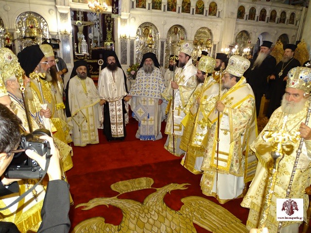 Ἀσπάζομαι μὲ σεβασμὸ καὶ υἱϊκὴ ἀφοσίωση τὴ δεξιά σας καὶ κατ’ ἐπέκταση τὰ χέρια ὅλων τῶν συνοδικῶν Ἀρχιερέων καὶ τοὺς εὐχαριστῶ ποὺ μὲ ἐψήφισαν καὶ μὲ ἀνέδειξαν ἐπίσκοπο τῆς ἐκκλησίας. Σᾶς ὑπόσχομαι ὅτι σὲ κάθε μου Θεία Λειτουργία θὰ μνημονεύω ὅλων τὰ ὀνόματα καὶ θὰ εἶμαι πρόθυμος πάντοτε νὰ ὑπακούσω σὲ ὅ,τι ἡ Ὑμετέρα Μακαριότητα καὶ ἡ περὶ Αὐτὴν Ἱερὰ Σύνοδος ἤθελε μοῦ ἀναθέσει, πρὸς δόξα Θεοῦ καὶ ἐπ’ ἀγαθῷ τοῦ πληρώματος τῆς ἐκκλησίας, ἐργαζόμενος πάντοτε γιὰ τὴν ἑνότητα καὶ τὴν εἰρήνη μέσα στὴν ἐκκλησία.