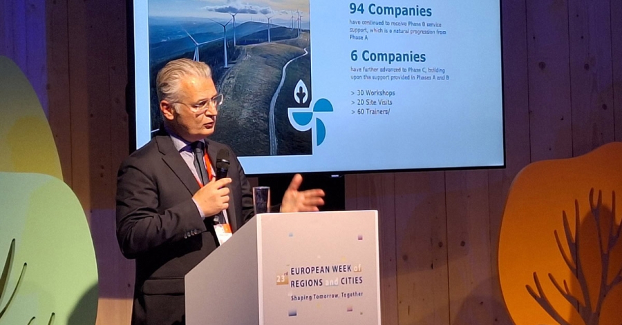 Με μια ομιλία ουσίας και ευρωπαϊκής προοπτικής, ο Περιφερειάρχης Πελοποννήσου Δημήτρης Πτωχός παρουσίασε στις Βρυξέλλες, στο πλαίσιο της Ευρωπαϊκής Εβδομάδας Περιφερειών και Πόλεων 2025, το εμβληματικό έργο «Ανάπτυξη Δομών Υποστήριξης της Καινοτομίας και της Επιχειρηματικότητας στην Περιφέρεια Πελοποννήσου».