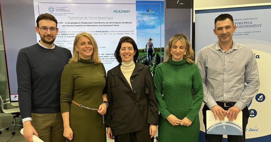 Την Παρασκευή 30 Ιανουαρίου η Περιφέρεια Πελοποννήσου δια της Γενικής Διεύθυνσης Δημόσιας Υγείας και Κοινωνικής Μέριμνας, σε συνεργασία με την εταιρεία συμβούλων κοινωνικής ανάπτυξης Headway, εταίρο του ευρωπαϊκού έργου PRIMACENTERS, υλοποίησε το Τοπικό Εργαστήριο Συνδιαμόρφωσης Μηχανισμού Εκπαίδευσης και Αντιστοίχισης Προσφοράς και Ζήτησης Εργασίας για Μετανάστες στον Πρωτογενή Τομέα, στις εγκαταστάσεις του ARK Co-Working Space στην Τρίπολη.