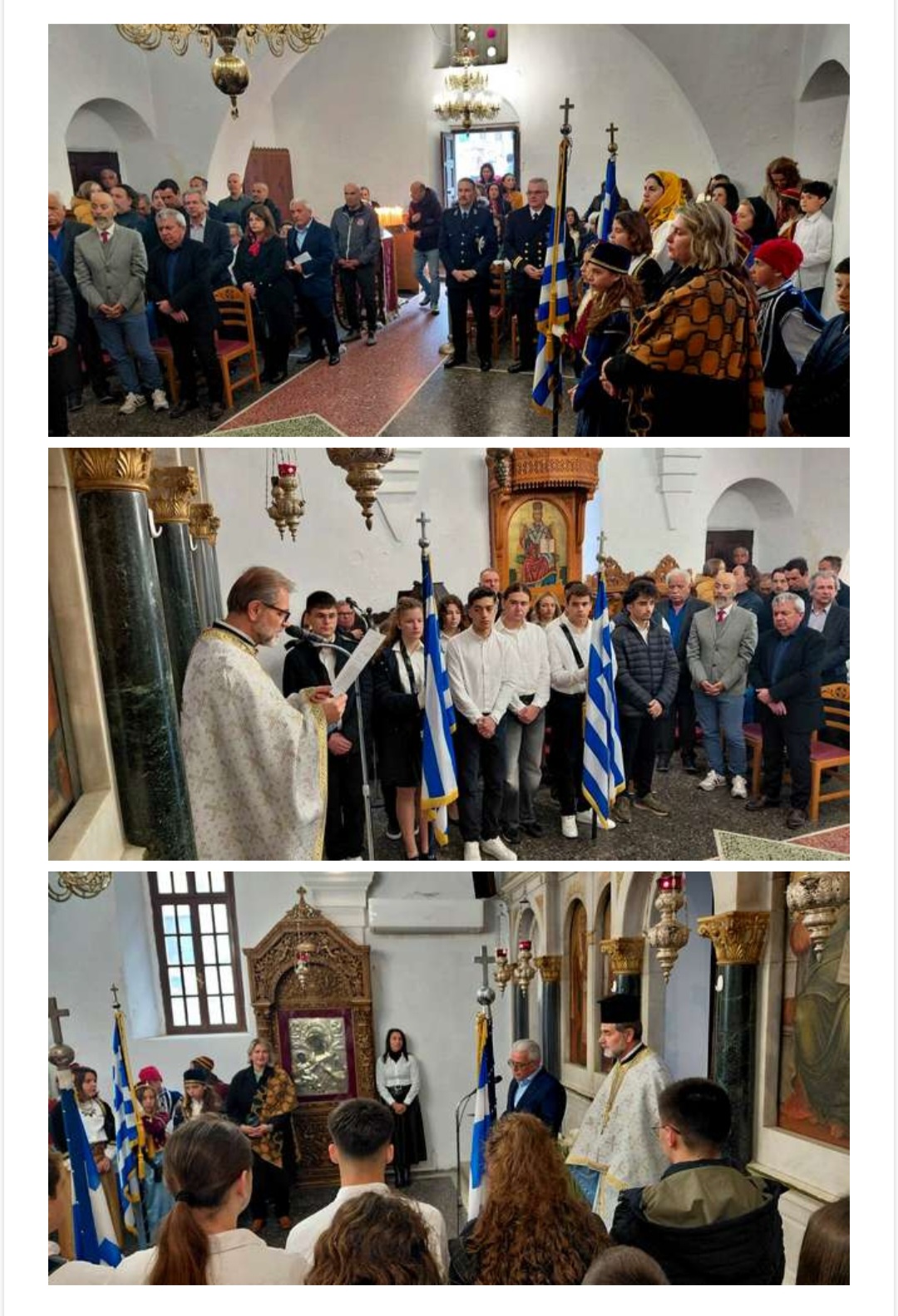 Στο Κάστρο Μονεμβασίας και στον Ιερό Ναό της Παναγίας Χρυσαφιτίσσης, έγινε ο Όρθρος και η Θεία Λειτουργία ενώ στη συνέχεια εψάλη η δοξολογία, παρουσία των αρχών, των σχολείων πρωτοβάθμιας και δευτεροβάθμιας εκπαίδευσης και του ευσεβούς λαού.