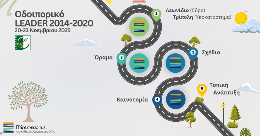 Η Αναπτυξιακή Πάρνωνα Α.Ε. προσκαλεί νέους και νέες επιστήμονες να συμμετάσχουν σε ένα τετραήμερο οδοιπορικό σε αντιπροσωπευτικά έργα του Τοπικού Προγράμματος LEADER/CLLD 2014–2020 στην Ανατολική Πελοπόννησο. Το οδοιπορικό θα πραγματοποιηθεί από 20 έως 23 Νοεμβρίου 2025 και θα αποτελέσει μια μοναδική ευκαιρία γνωριμίας με τους ανθρώπους, τα έργα και τις πρωτοβουλίες που μετέβαλαν ουσιαστικά την αναπτυξιακή φυσιογνωμία της περιοχής. Με τη δράση αυτή, η Αναπτυξιακή Πάρνωνα επιδιώκει να αναδείξει τη σύνδεση της επιστημονικής γνώσης με την τοπική ανάπτυξη, να ενισχύσει τη συμμετοχή της νέας γενιάς ερευνητών και ερευνητριών, και να ενθαρρύνει τον διάλογο ανάμεσα στην έρευνα, την επιχειρηματικότητα, την τοπική ανάπτυξη και την κοινωνία.
