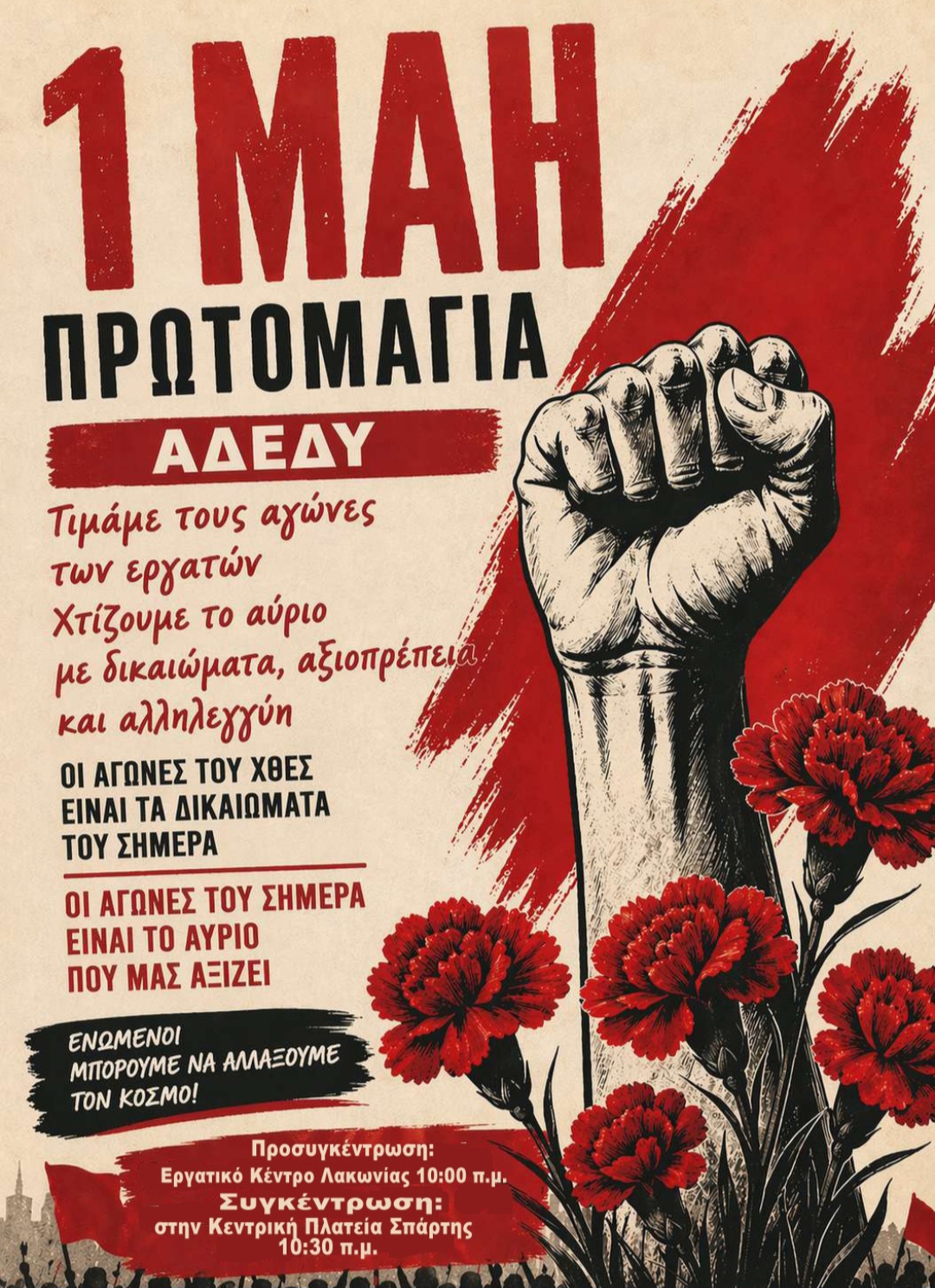 ΑΔΕΔΥ ΛΑΚΩΝΙΑΣ | 1η Μάη: Δεν είναι αργία, είναι η δική μας αφετηρία