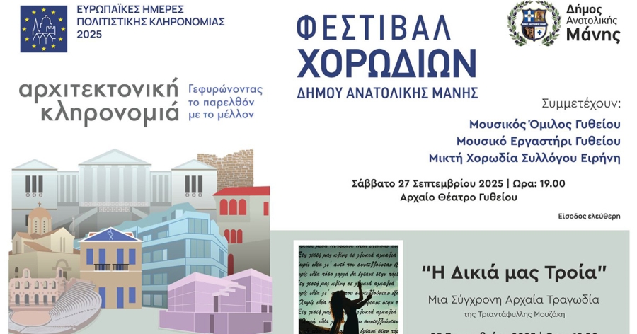 Ο Δήμος Ανατολικής Μάνης συμμετέχει στους εορτασμούς με τη διοργάνωση των ακόλουθων δράσεων στο Αρχαίο Θέατρο Γυθείου: